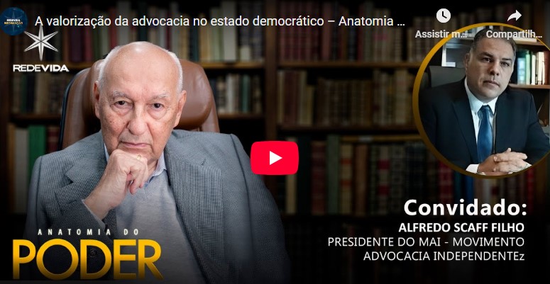 O presidente do Movimento Advocacia Independente (MAI), Dr. Alfredo Scaff Filho foi o convidado do programa “Anatomia do Poder”, conduzido pelo jurista Dr. Ives Gandra da Silva Martins. Reconhecido por entrevistar personalidades de destaque do cenário público e privado, o programa tem como proposta “dissecar o Poder” de forma acessível, permitindo ao telespectador compreender de maneira simples e direta os desafios concretos da atualidade.